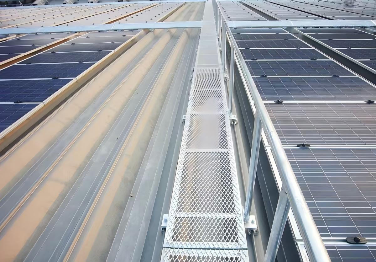 Passerella solare è un componente solare di utilizzo estremamente diffuso, tipicamente installato per facilitare una migliore manutenzione dell'impianto solare. Inoltre distribuisce i carichi attraverso passerelle dedicate per evitare danni allo strato impermeabile o perdite del tetto causate dai frequenti movimenti del personale.