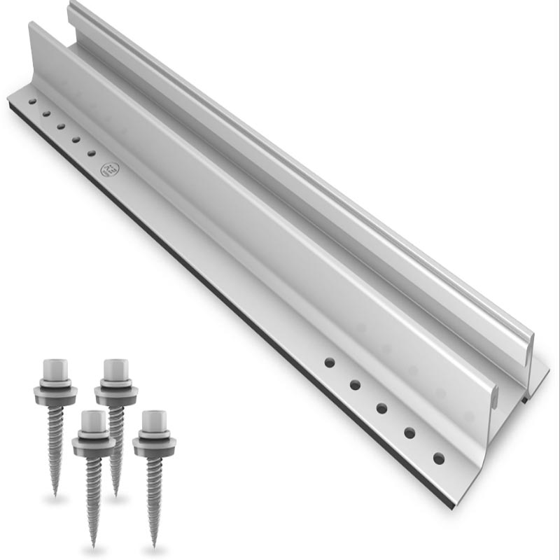 Mini binario solare realizzato in lega di alluminio ad alta resistenza 6005-T5 (anodizzata per anticorrosione) con connettori in acciaio inossidabile SUS304, funziona con piastrelle in acciaio colorato/lamiere zincate per resistere alla ruggine e ai danni esterni. Con un peso di solo 1 kg al metro, utilizza il "fissaggio del punto di picco" per distribuire i carichi in modo uniforme, evitando una pressione aggiuntiva sui tetti in metallo.